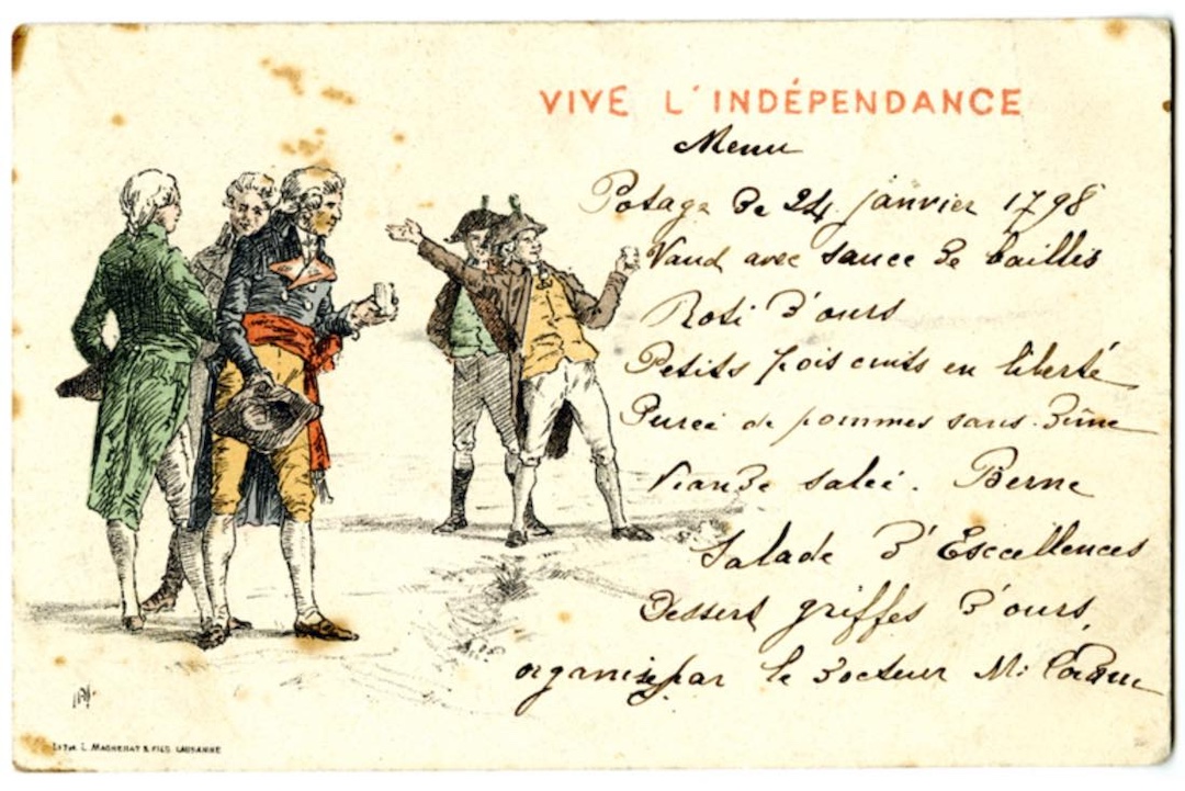 Le 24 janvier 1798, le dernier bailli bernois a quitté le château Saint-Maire, et les citoyens ont proclamé l’indépendance. L’événement s’est déroulé sur la place de la Palud à Lausanne, où le premier drapeau vert vaudois a été hissé.